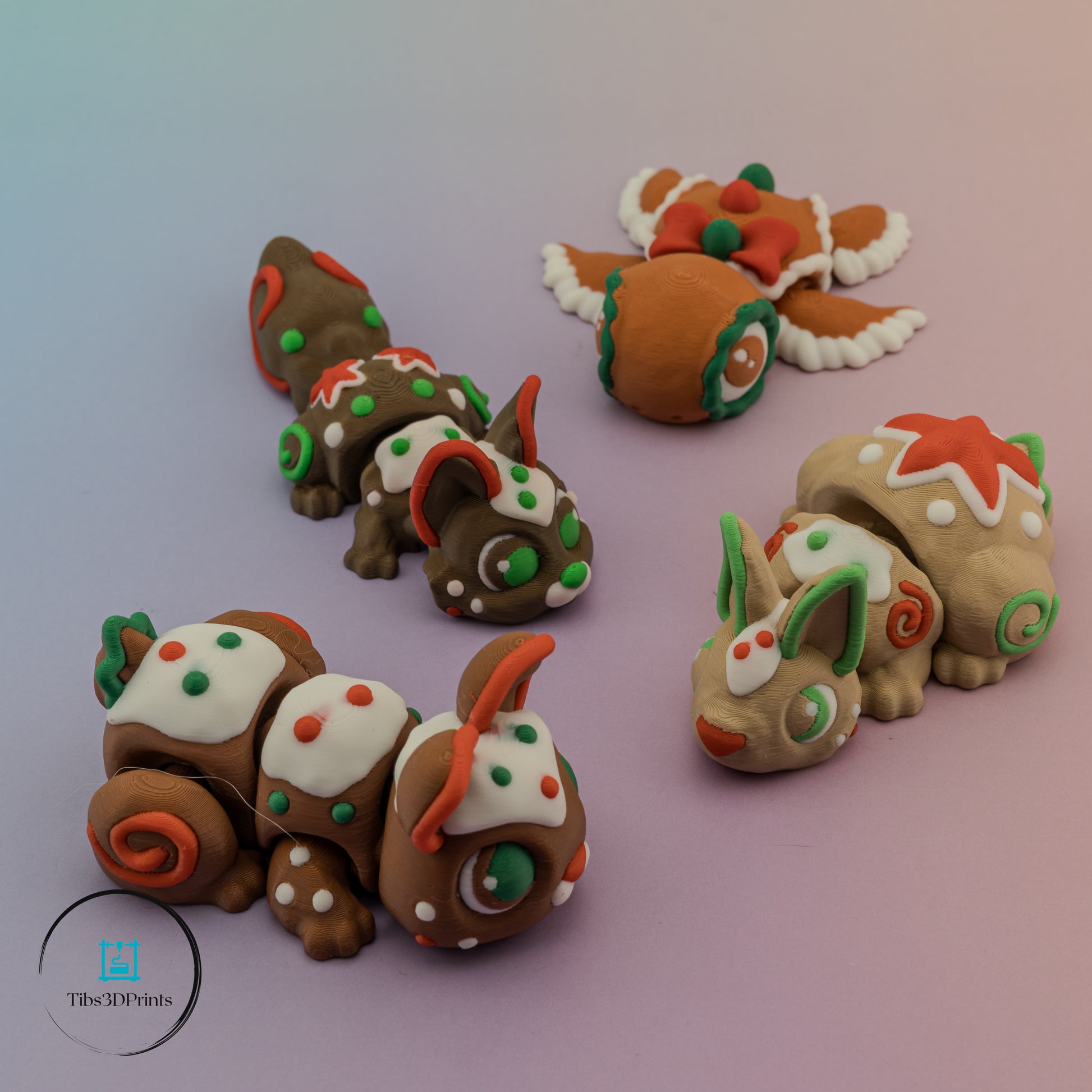 Sweeten your holiday display with our irresistible Christmas Critters 4-Pack! This festive collection features four unique articulated critters decked out in gingerbread-inspired holiday colors.