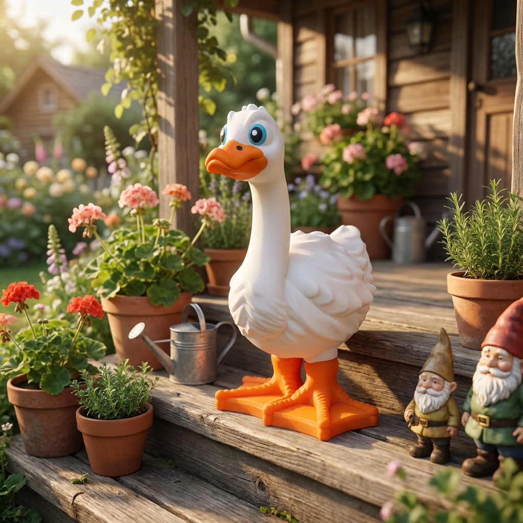 Meet your new feathered friend! This adorable 3D printed porch goose brings instant charm to your entryway, garden, or any space that needs a touch of whimsy.